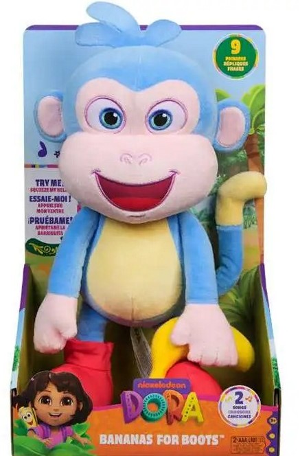 - Ο Boots τραγουδάει δύο τραγούδια, συμπεριλαμβανομένων των τραγουδιών θέματος του και της Ντόρας, και απαγγέλλει 9 οικείες, αστείες φράσεις από την παράσταση! Πλένεται επιφανειακά. Καθαρίζεται μόνο σε λεκέδες. Απαιτούνται 2 μπαταρίες AAA (περιλαμβάνονται).